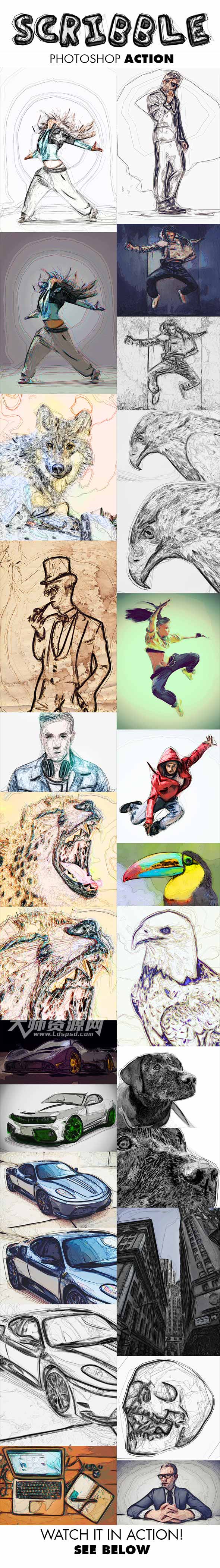 Scribble Photoshop Action,极品PS动作-手绘草图