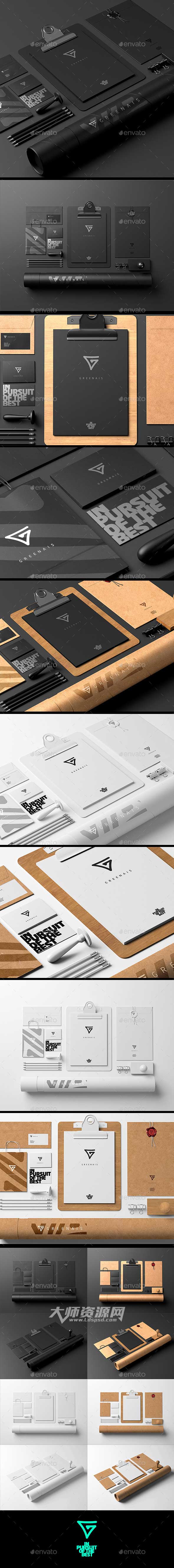 酷黑风格的办公文具模型:Stationery Branding Mock-Up