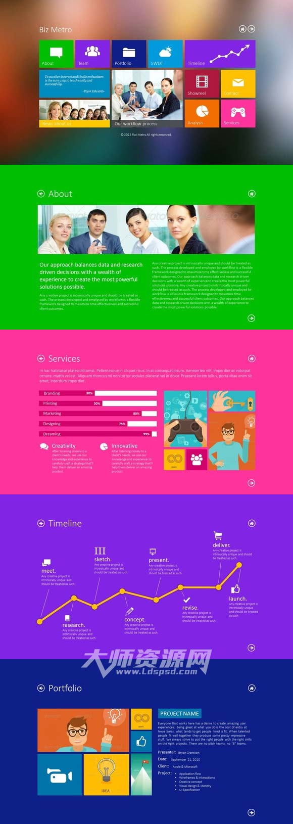 Win8风格的通用型PPT模板:Biz Metro PowerPoint