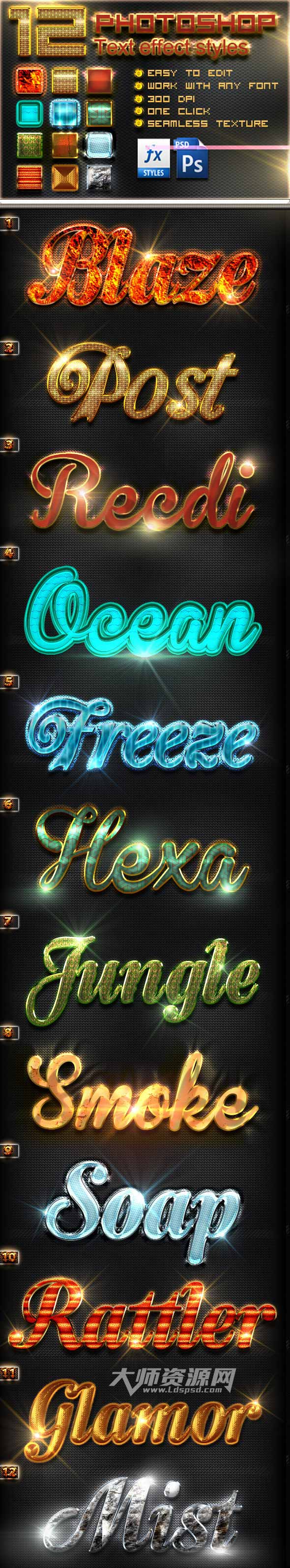 12个金属质感的PS图层样式:12 Photoshop Text Effect Styles Vol 4