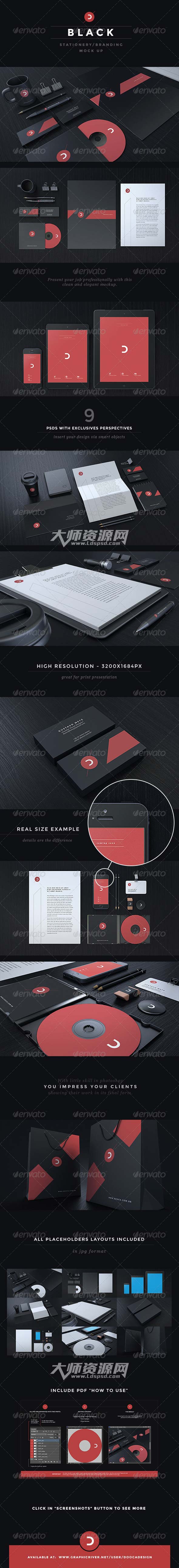 Black Stationery Branding Mock-Up,酷黑风格的办公文具模型