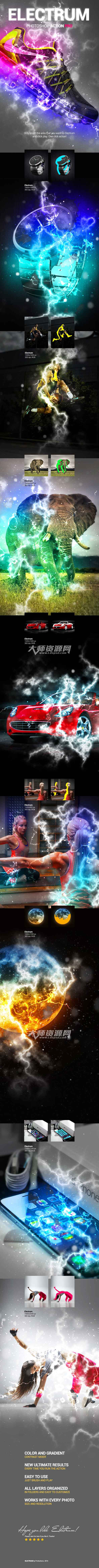 Incredible Photoshop ACTION Pro with effect of electric lighting. Easy to change color, contrast and gradient of lighting. Very simple to use – only brush the area and click play. One click action.