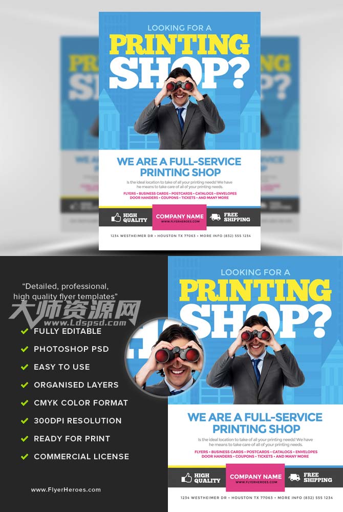 Printing Services Flyer Template is a premium Photoshop PSD flyer / poster template designed by FlyerHeroes to be used with Photoshop CS4 and higher.