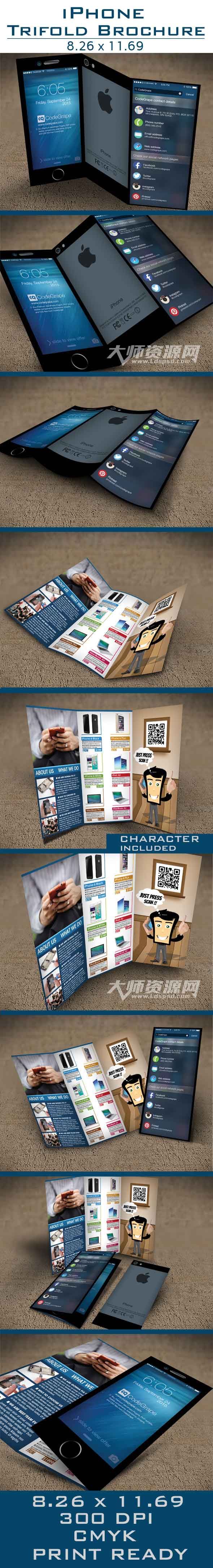 三折页模板-iphone风格:iPhone Tri-Fold Brochure