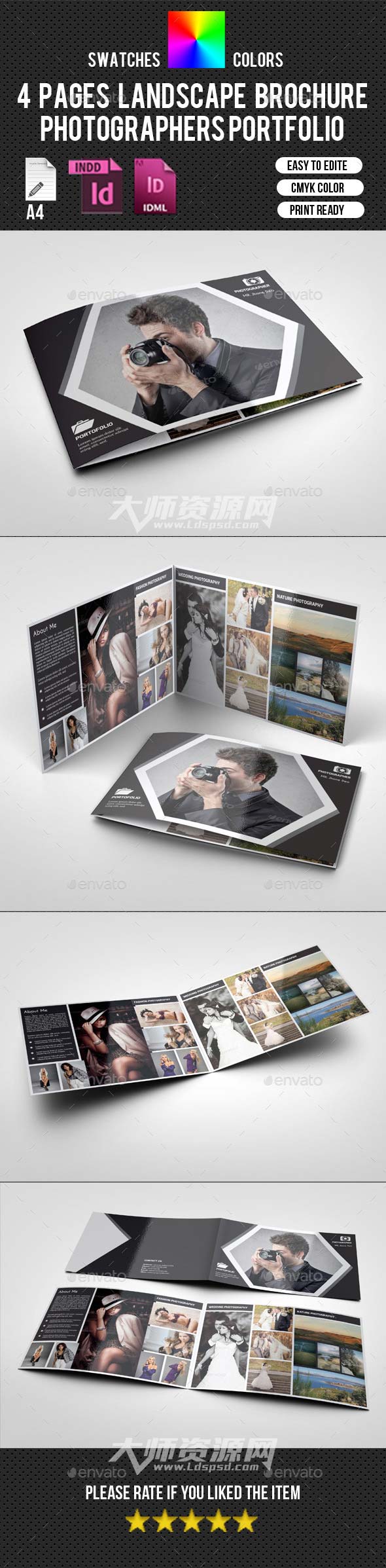 indesign模板-摄影手册模板:4 Pages Landscape Photography Brochure-V19
