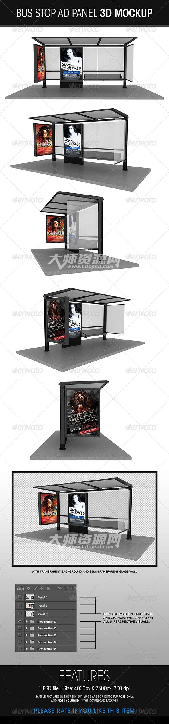 公交站台广告牌3D模型:Bus Stop Ad Panel 3D Mockup