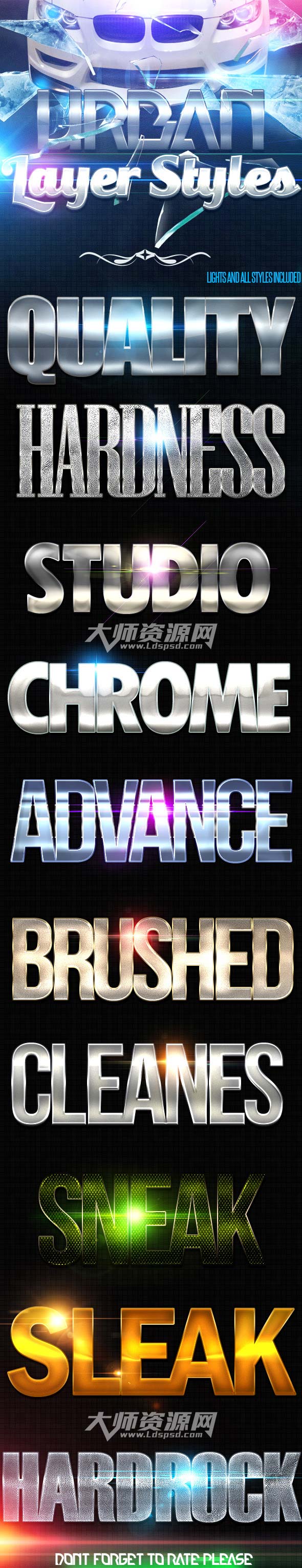 Urban Premium Styles,PS图层样式-10个金属风格的文本样式