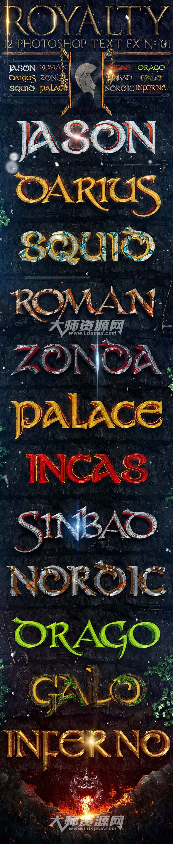 PS图层样式-皇室贵族风格:Royalty Photoshop Text FX Vol 01