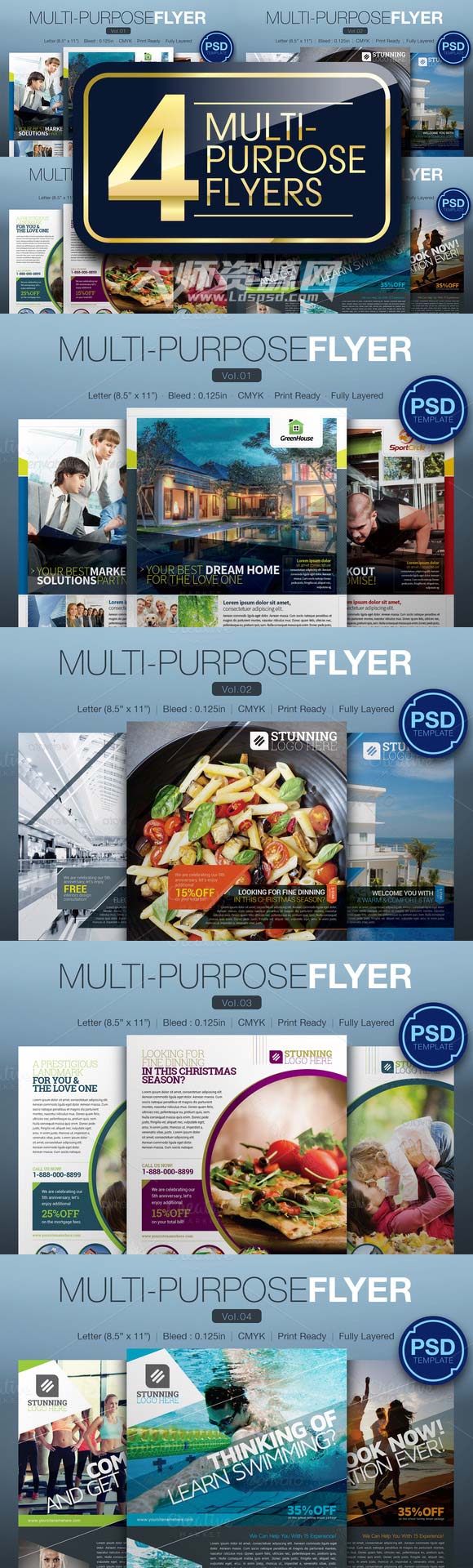 多用途宣传单四套合集版:Multipurpose Flyer Bundle