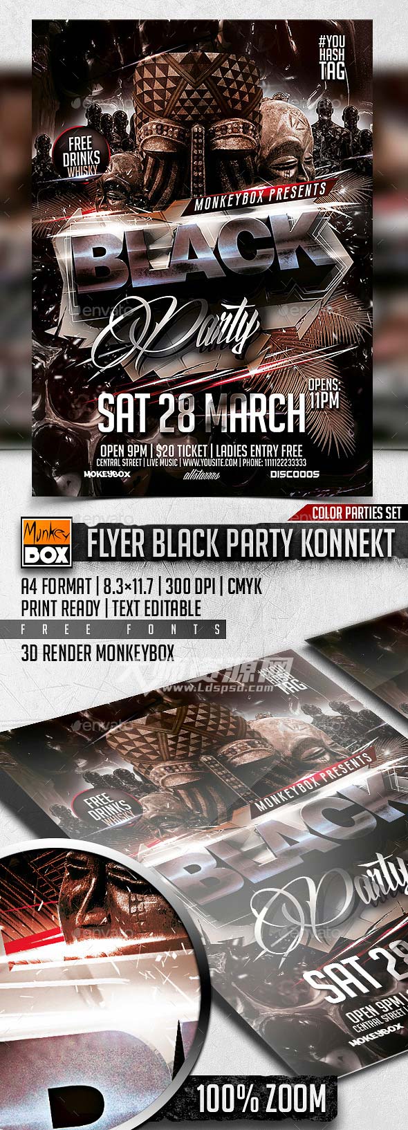 黑色风格的派对海报模板:Flyer Black Party Konnekt