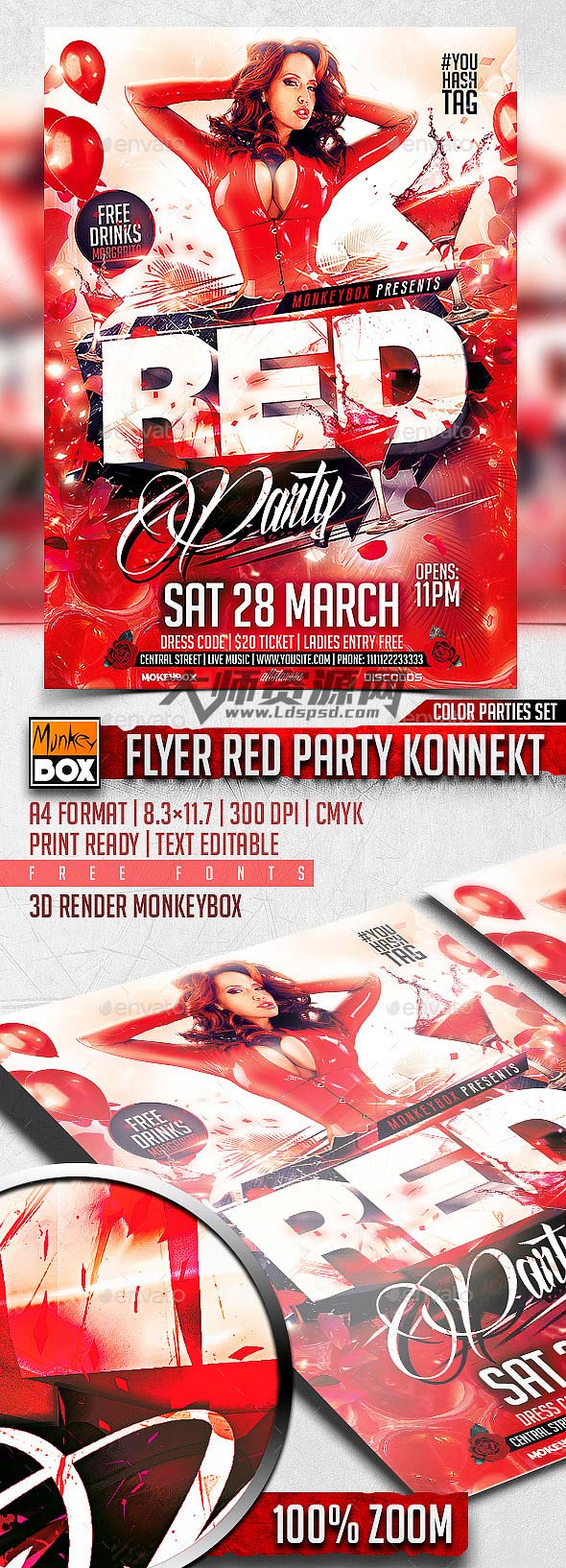 红色风格的派对海报模板:Flyer Red Party Konnekt