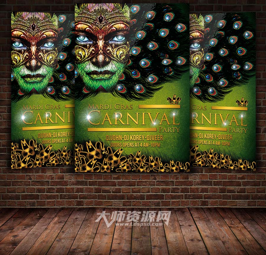 狂欢节派对传单模板:Mardi Gras Flyer Template 2