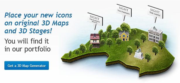 You already own the original 3D Map Generator or 3D Stages? Then feel free to try these example Icons on your maps. This set is created with the SmartIcon – Icon Generator – 3DM and not reworked.
