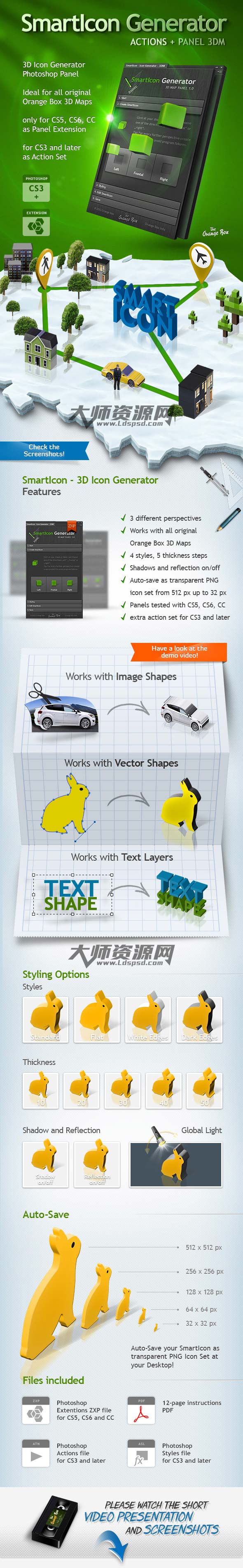 SmartIcon - 3D Icon Generator - Panel and Actions,PS扩展面板-3D图标生成器