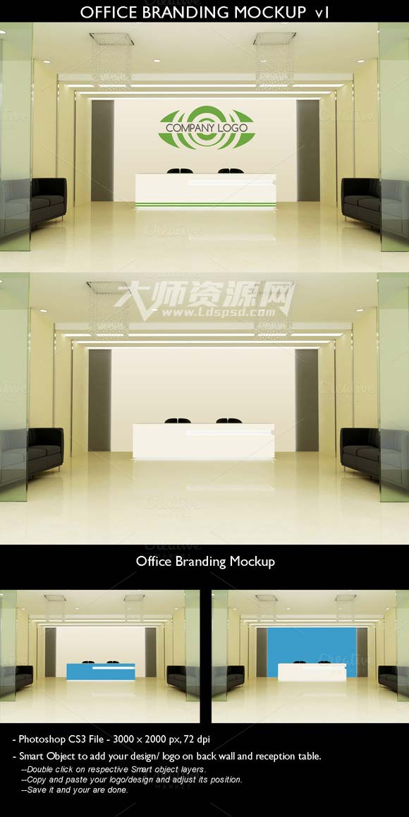 公司前台品牌展示模型:Office Branding Mockup v1