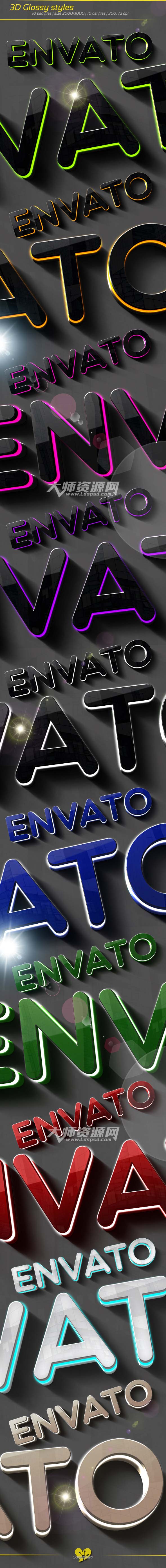 PS图层样式-10个钢化玻璃文本特效:3D Glossy Styles