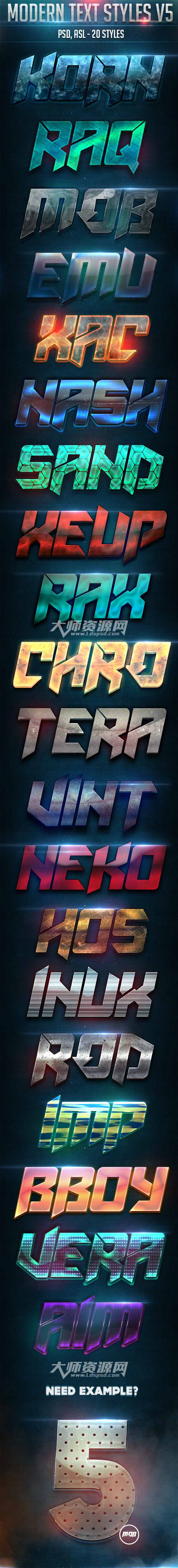 20个金属质感的PS图层样式:Modern Text Styles V5