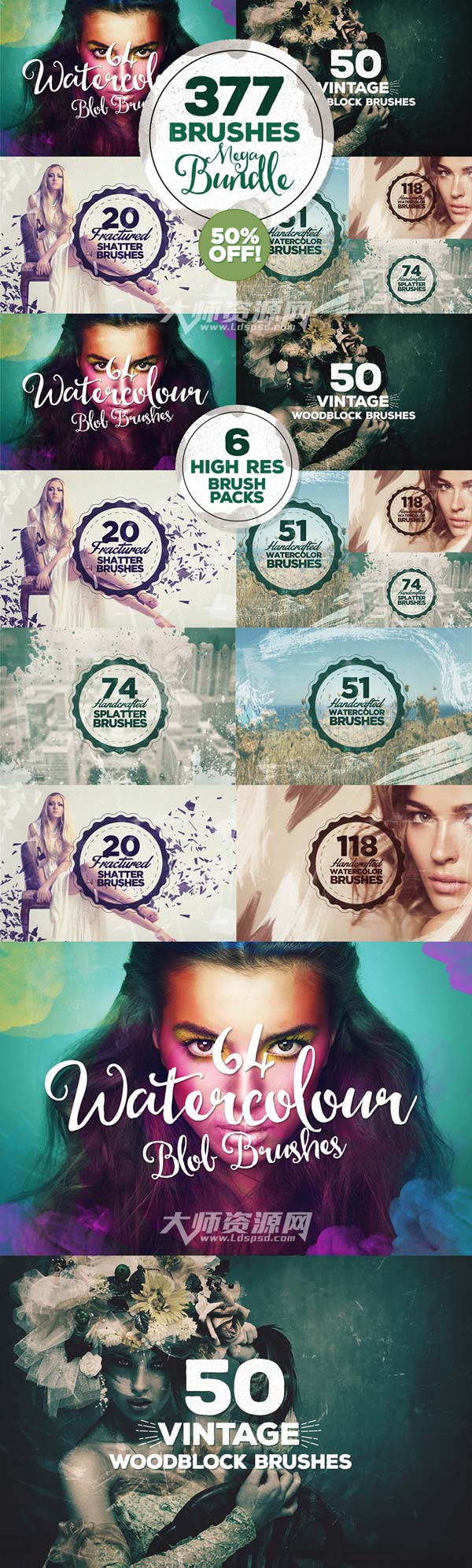 377个PS笔刷(六套合集):377 Brushes Megabundle