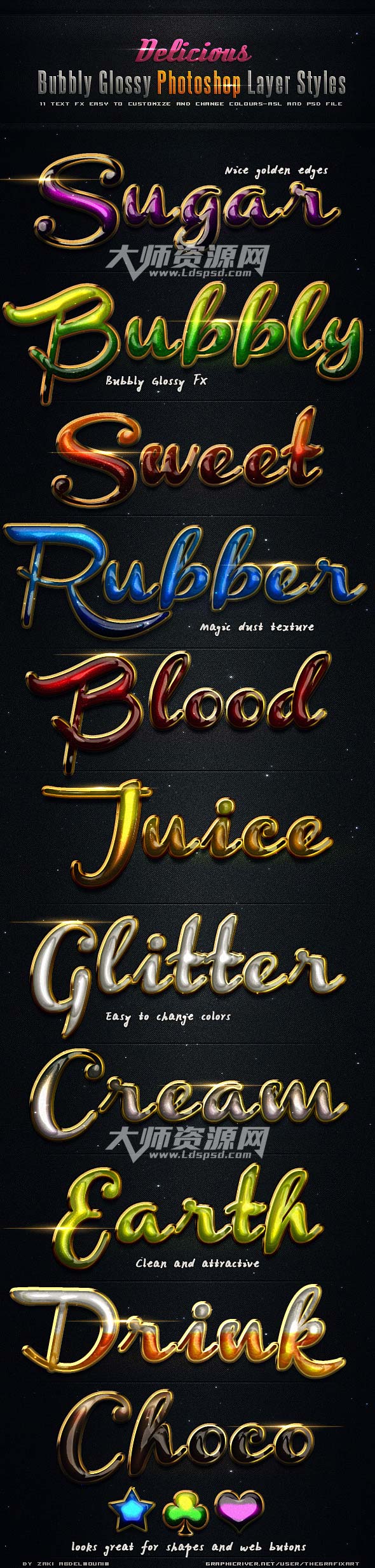 11个糖果风格的PS图层样式:Delicious Bubbly Photoshop Styles