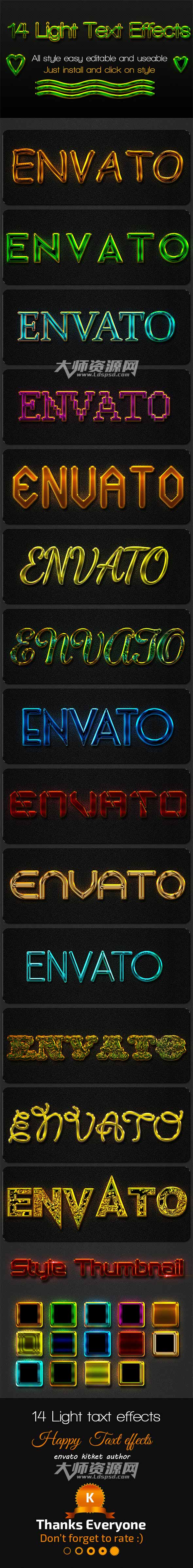14 Light Text Effects,14个金属光感强的PS图层样式