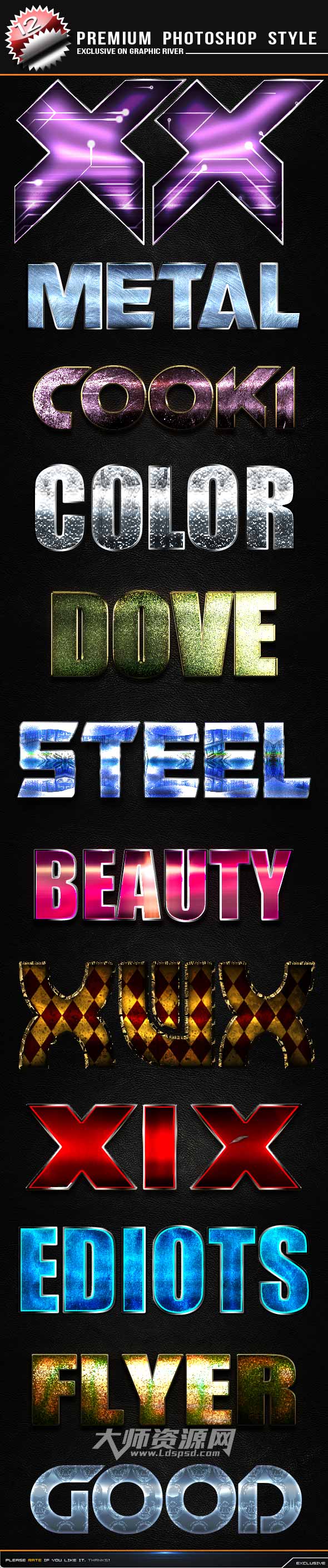12个金属质感的PS图层样式:12 Premium text effect v5