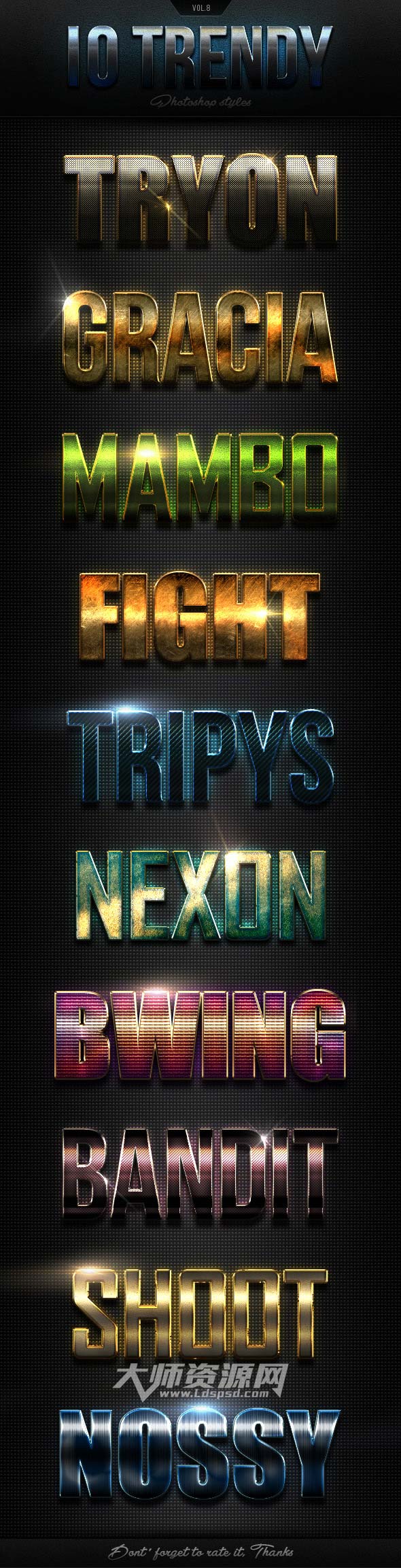 10个时髦的PS图层样式(第八套):10 Trendy Photoshop Styles Vol.8