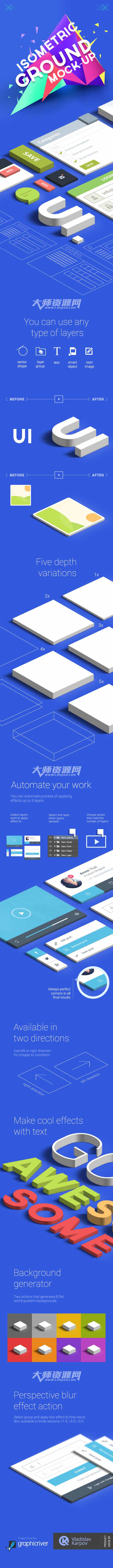 PS动作-等轴堆叠:Isometric Ground Mock-UP Actions