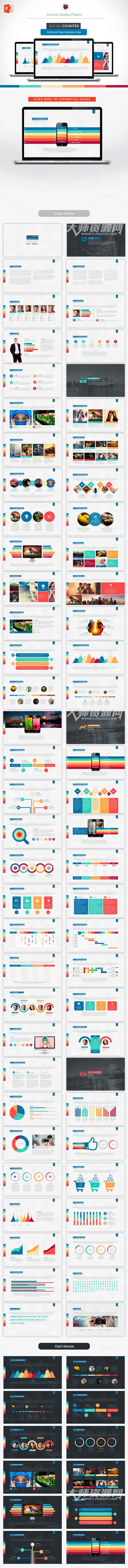 通用型商业PPT模板:Social Counter Powerpoint Template