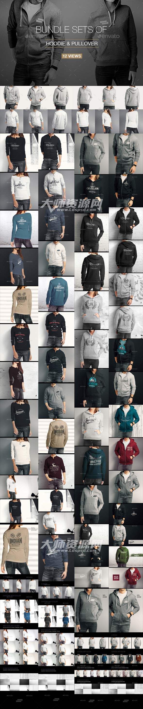 Hoodie Pullover Bundle Mock up,卫衣和长袖合集(共四款)