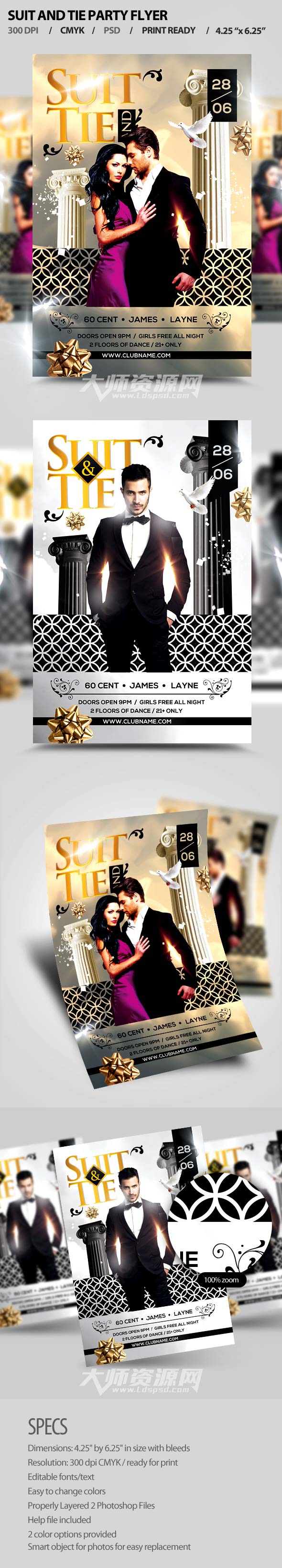 时尚的婚纱影楼传单模板:Suit And Tie Party Flyer