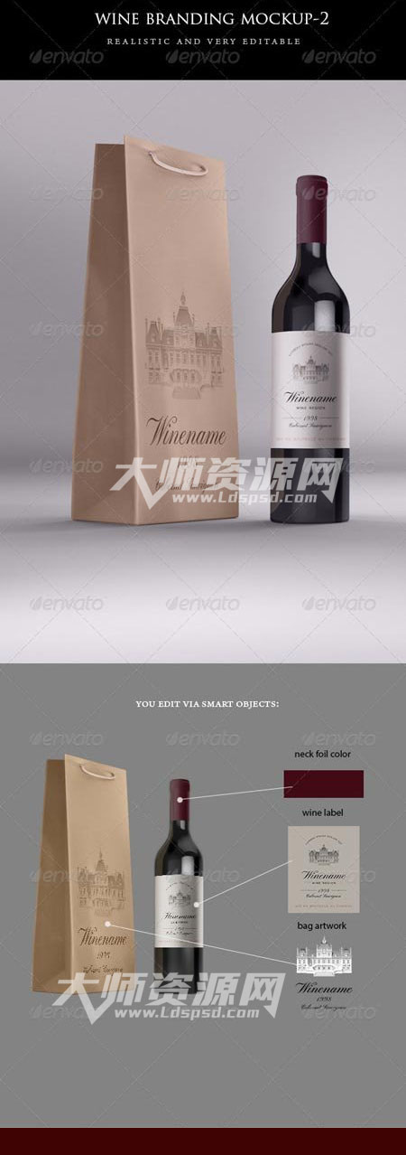 葡萄酒模型:Wine Bag and Bottle Mock-up