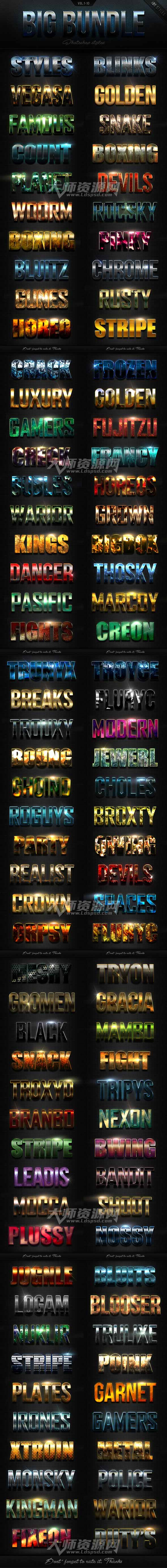 PS图层样式-100个时尚的样式合集包:100 Trendy Photoshop Syles Big Bundle