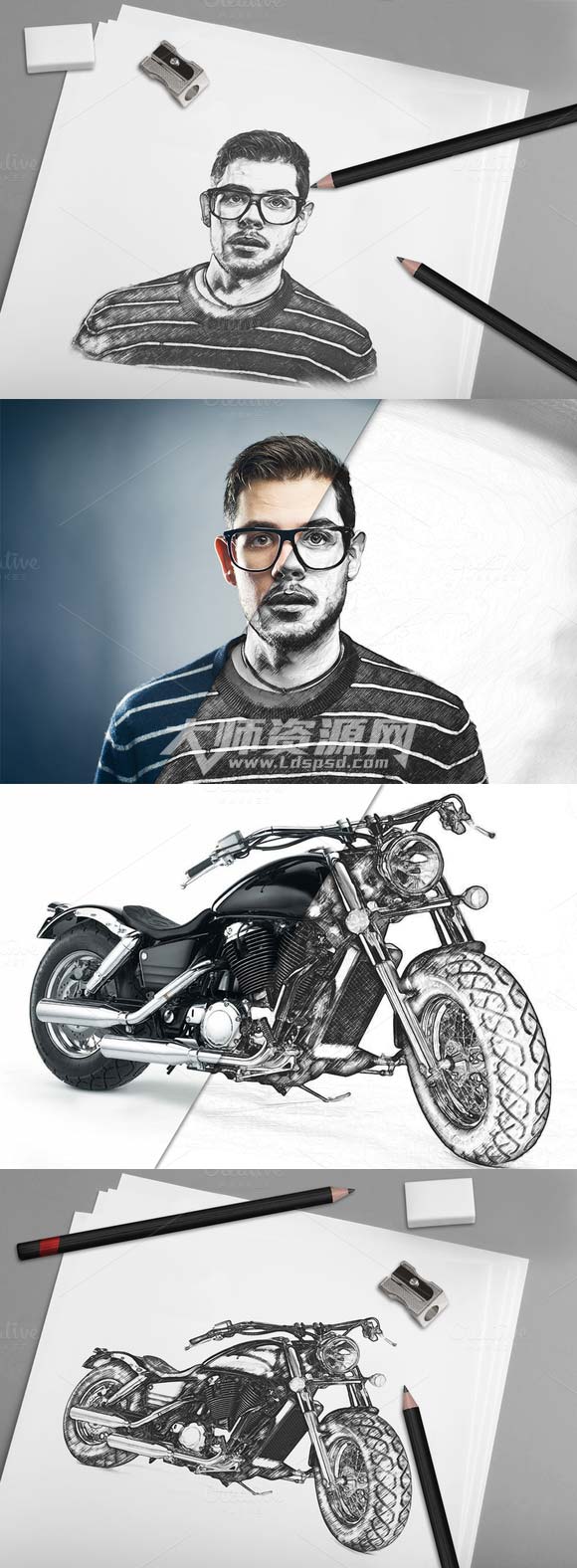 PS动作-写实素描:Realistic Drawing Action + Mock-up