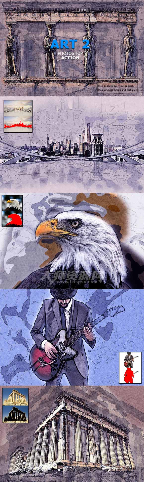 Art 2 Photoshop Action,PS动作-抽象草图(第二版)