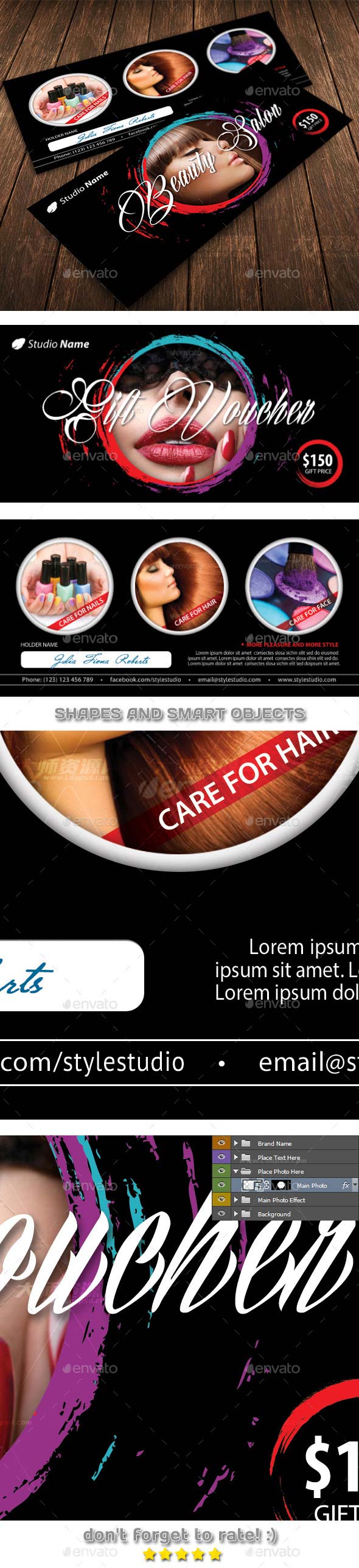 时尚的美容美发礼券模板:Stylish Beauty Salon Gift Voucher 33
