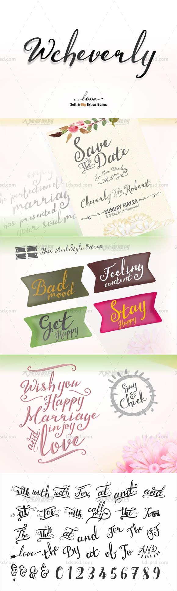 Wcheverly Script with style Soft, emotional, lyrics, even passionate calligraphic typeface konteporel to create unlimited creativity. His appearance was influenced by the look of writing with a steel pen I wrote myself irregularly but memorable experience, a tool that can push and pull, and which produces Fine rude when pressure upon it is varied. Smooth, sophisticated Script Wcheverly drawn and redrawn and the connection of letters refined to make an appearance handwriting correctly. and guided by the Letter Extras for your free variations in the design of your world for the purpose and meaning of the ordinary but it can give a deeper meaning ....