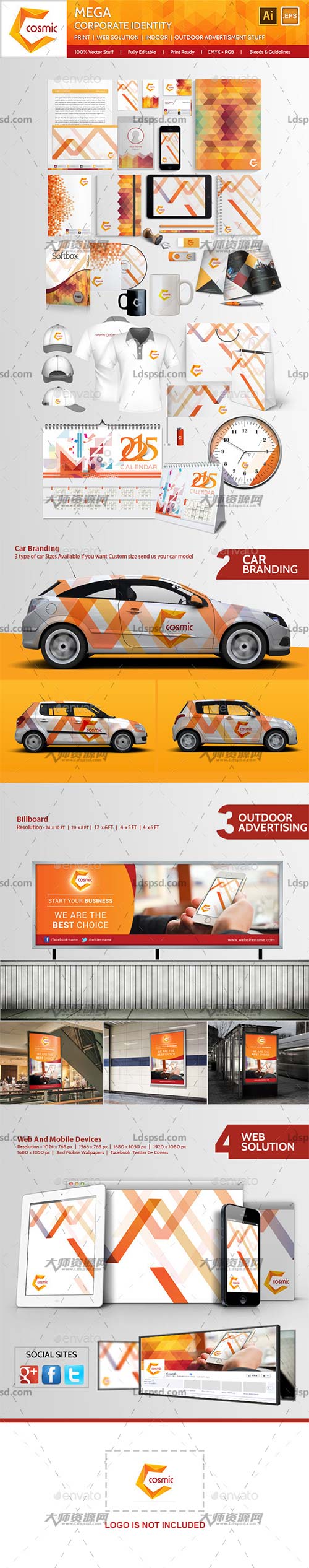 Mega Brand Corporate-Identity-Cosmic,精美的VIS(企业视觉识别系统)模板
