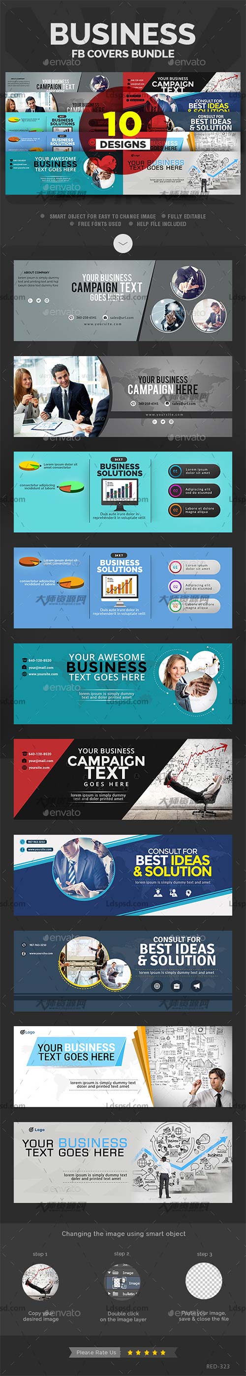 Business Facebook Covers Bundle - 10 Designs,网站顶部广告模板(通用型/10个)