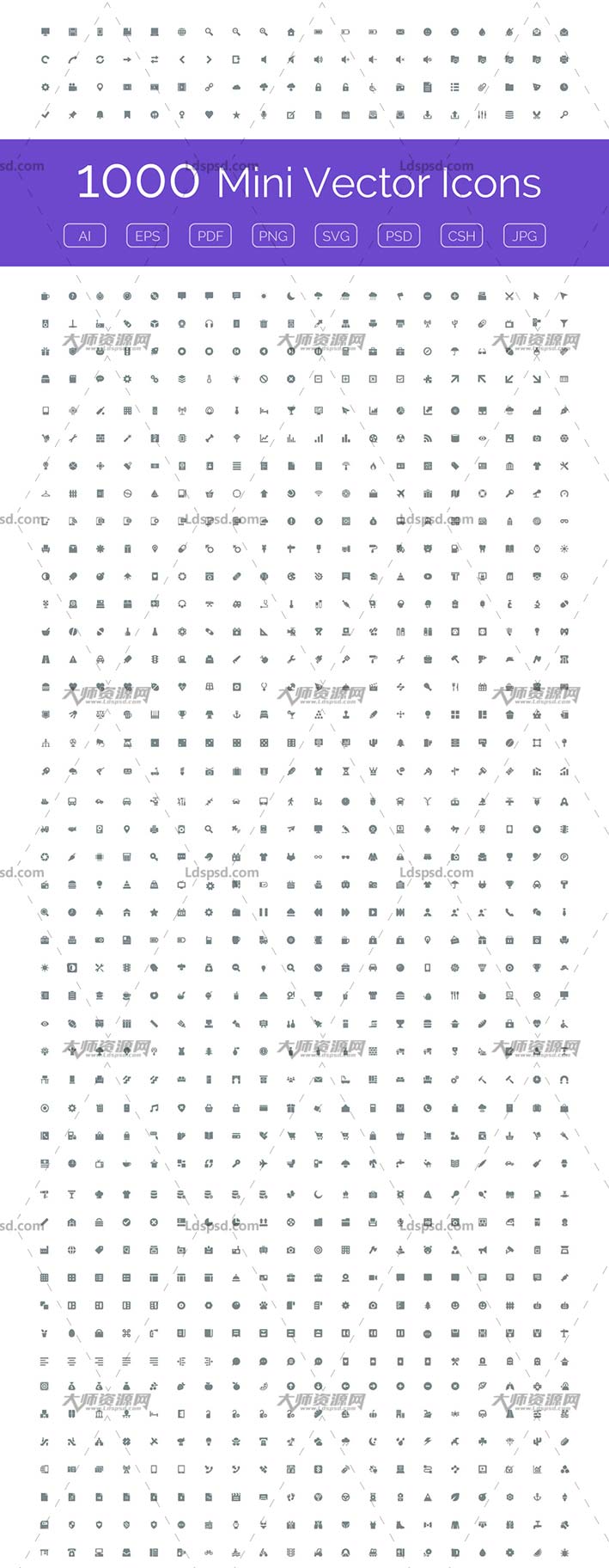 1000个常用矢量图标(包括PS形状工具预设):1000 Mini Vector Icons
