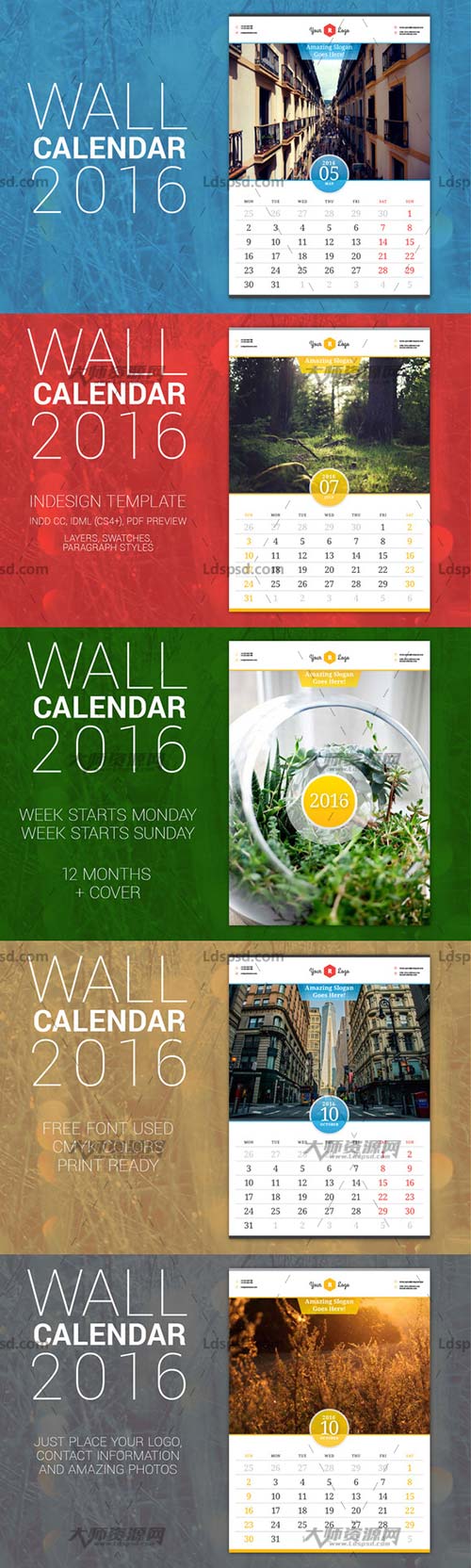 国外indesign模板-2016年挂历(A3尺寸):Wall Calendar 2016