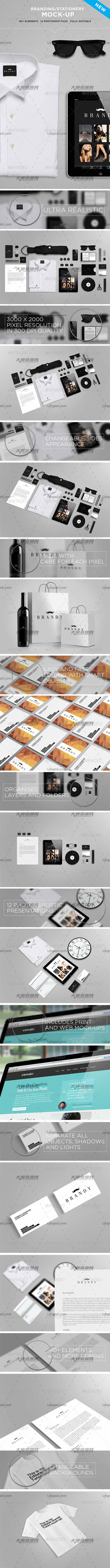 企业视觉形象识别系统(酷黑风格):Stationery Branding Mock-Up