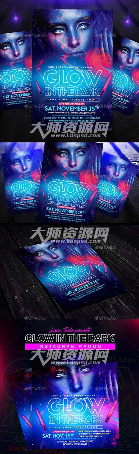艺术表演海报:Glow in the Dark Flyer + Instagram Promo