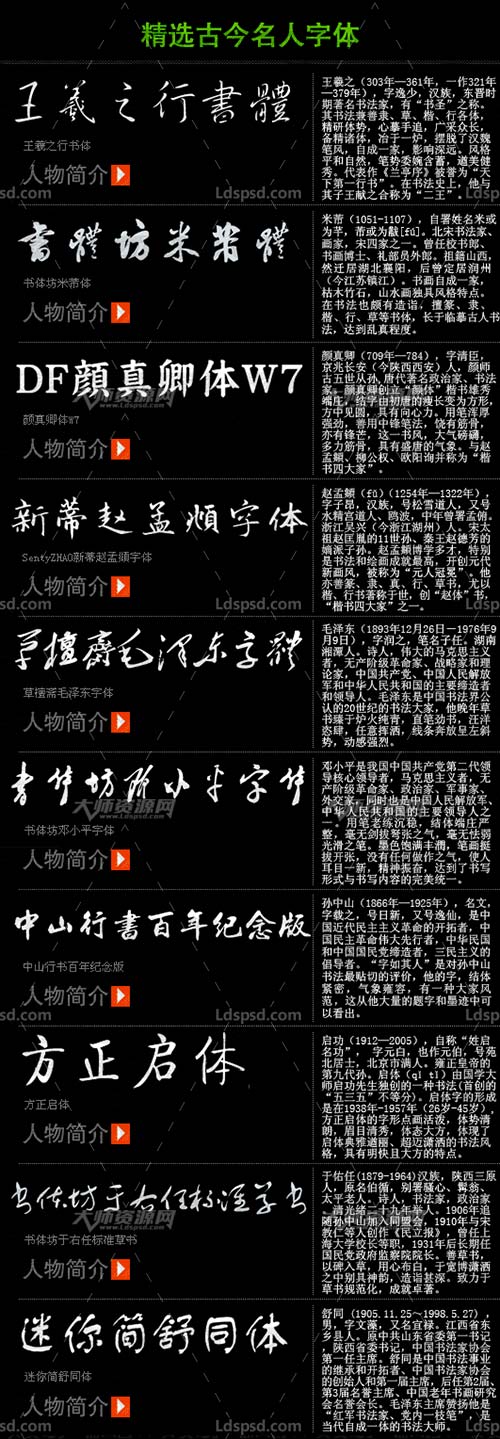 10 celebrity fonts,古今名人书法字体(精选10款)