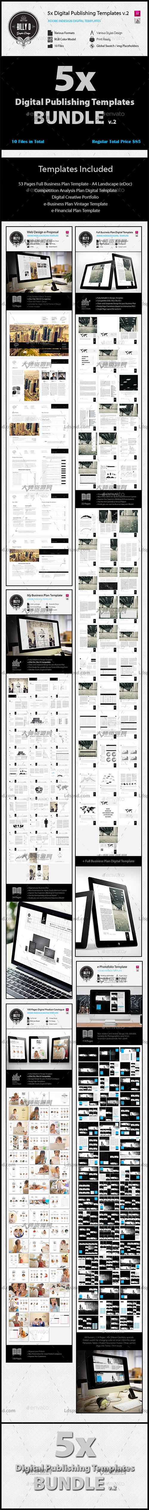 5x Digital Publishing Templates Bundle v2,indesign模板-商业计划手册(五套合集)