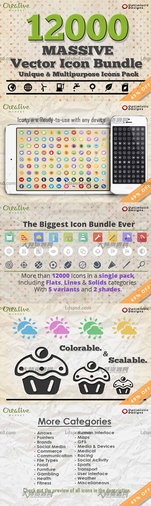 12000个常用矢量图标(包括PS形状工具预设):12000 Massive Vector Icons Bundle