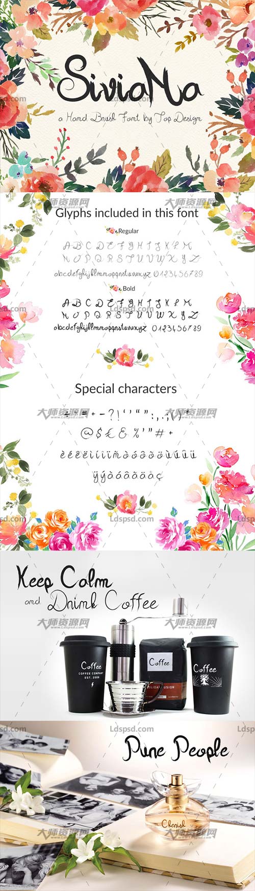 笔画潇洒的手写英文字体:Siviana + Bonus