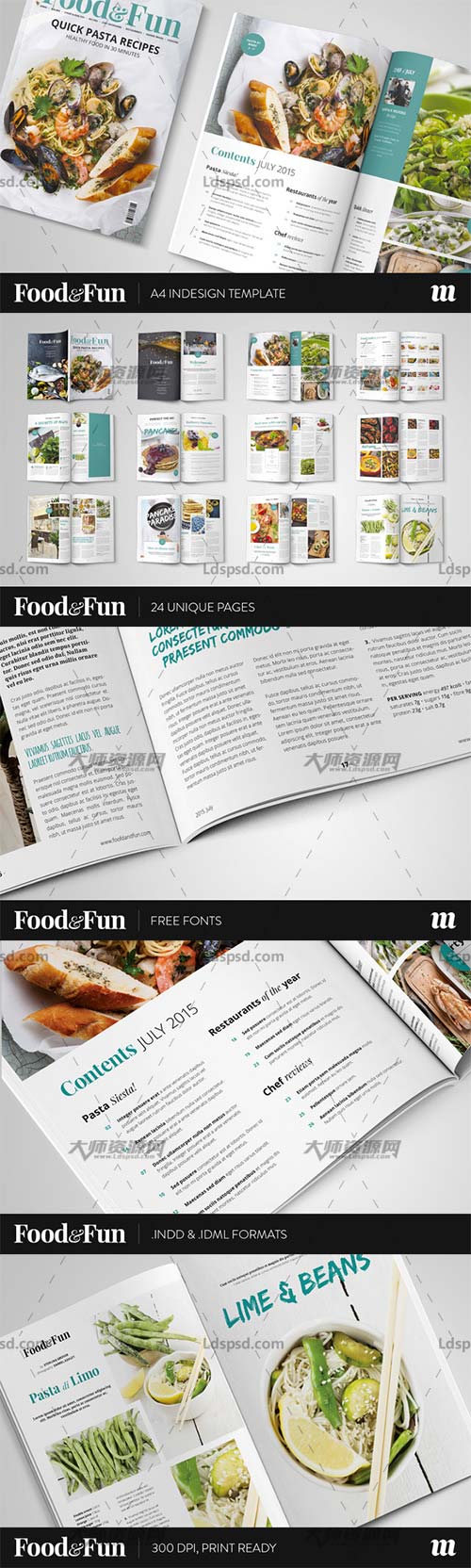 indesign模板-产品手册(食品类/24页):Food&Fun Magazine InDesign Template