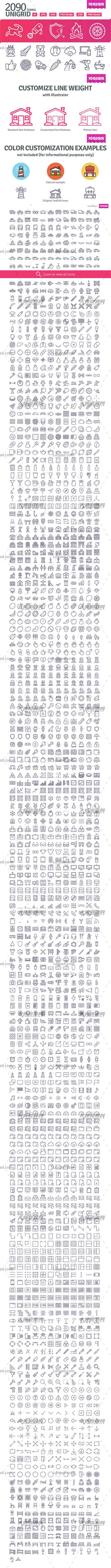 UI素材-2090个矢量的线条图标(包含PS形状预设文件):2090 icons in UniGrid set