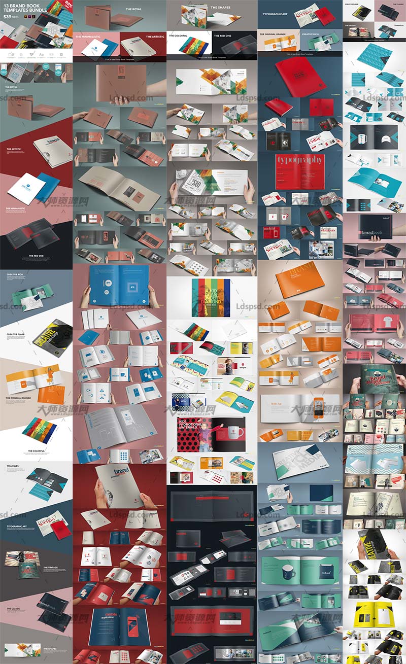 13 Brand Guidelines Templates Bundle,VIS手册-13套视觉形象识别系统(Indd/AI)