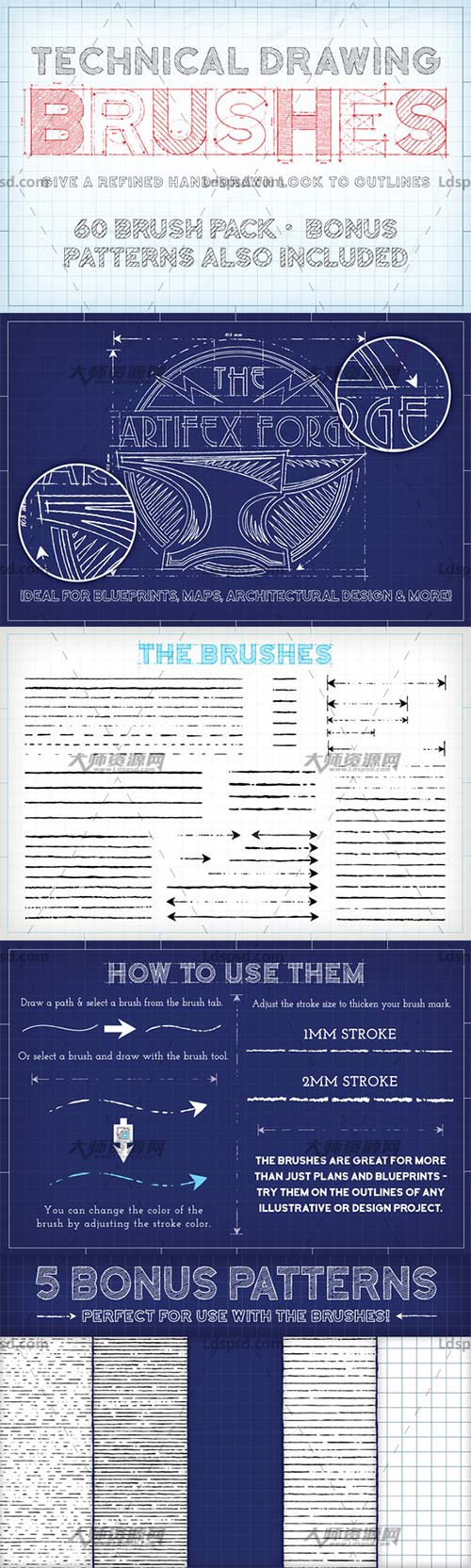 Technical Drawing Brushes,AI画笔-60个草图专用的笔刷